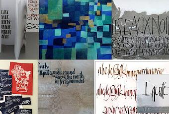 Sur le visuel composite mais pas exhaustif ci-contre vous pouvez découvrir des aperçus de : Journal graphique, Matière & composition sur papier enduit, Calligraphie latine sur Suminagashi (le stage de Montreuil-Bellay), 1900 Belle époque de la lettre, calderitalic à la plume palette et Calderitalic à la plume carrée et il y en a quelques autres encore.