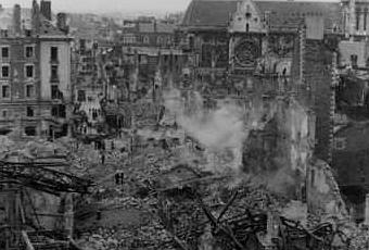 "J'avais été avec ma mère chercher des biscuits pour les prisonniers à la biscuiterie Lu. Ma mère me dit : « Je fais la queue ; rejoins-moi tout à l'heure ; va donc faire un tour rue du Calvaire ». Il y avait là de grandes boutiques avec des jouets. Je reviens, je prends la queue avec ma mère. On rentre avec nos biscuits. L'après-midi, bombardement. Le lendemain, rue du Calvaire, il n'y avait plus rien, tout avait été rasé, on voyait l'horizon. Ce fut pour moi un sentiment extraordinaire : pour un enfant, une ville c'est éternel. Tout d'un coup, elle était tombée comme un décor. J'étais moins sensible à la mort, au drame, même si j'avais eu peur, qu'au côté d'évanouissement, ce que j'ai désigné par la suite comme « esthétique de la disparition », c'est-à-dire le tour de passe-passe, maintenant il n'y a plus rien. C'était cela la guerre, la guerre éclair, la domination, l'héroïsation de la technique : faire disparaître la réalité, la réalité de la vie, la réalité d'un quartier."
