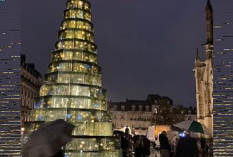 On a donc eu crachin, mais cela n’empêche pas d’aller voir le sapin de verre de Noël devant la cathédrale, et de trouver qu’il est plutôt joli, même tout dégoulinant.