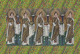 A Ravenne, dès le milieu du VIe siècle, dans une procession céleste des mosaïques de l'église Saint-Apollinaire-le-Neuf, apparaît une Eulalie parmi les vierges.