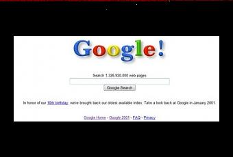 Pour ses 10 ans, google vous permet de faire une recherche sur son vieil index de 2001.