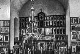 Il n'y a donc pas de sanctuaire, et l'iconostase se trouve accolée au
