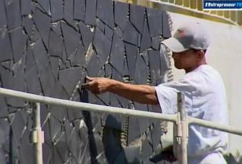 Avec le chantier de cette salle polyvalente, Osvaldo Damo, à la tête de Pro Carrelage Roannais, s’est attaqué à un ouvrage impressionnant par sa taille (900 m2 de façades extérieures à couvrir de grès cérame noir ; 3 000 m2 de murs et sols à l'intérieur), et par l'approche technique.