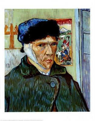 L'auto- portrait de l'homme à l'oreille coupée exprime tous les tourments dont souffrait ce géant venu de Hollande. Si l'on met de côté l'étude artistique et que l'on s'intéresse prosaïquement aux symptômes qu'il évoque dans sa correspondance avec son frère Théo, on s'aperçoit que les maux évoqués ne sont pas sans similitudes avec l'hyperacousie. On peut facilement imaginer qu'il en soit arrivé à se couper l'oreille (droite ou gauche ?) lorsqu'on entend en permanence les bruits insupportables que sont les acouphènes.