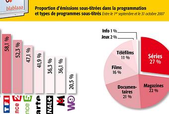 PS: je m'aperçois en publiant le diagramme que France 3 arrive en tête... Évidemment, Ce sont les séries mièvres qui sont le plus sous-titrées, je vérifierai ce soir en regardant "Plus belle la vie"...