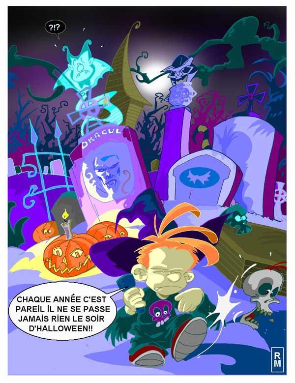 Haloween : dessin réalisé au crayon sur feuille papier encrage stylo, scanné retouche palette graphique sur GIMP2.paint et twisted brush
