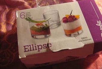 Tralalalalalère ! Vous êtes tous jaloux hein ? J'ai des verrines. Je m'en étais offert 6 il n'y a pas longtemps chez Super U. En toute simplicité, elliptique, ni trop petites, ni trop grandes, elles étaient tout à fait à mon goût !