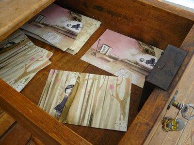 I have the luck to have a magnificent sideboard, of my back grandmother.I stored all my creations...My books editor made print promotional postcards for The Hunter of Butterflies .I wanted to offer it to 5 of you, then leave a comment and I shall make a drawing lots