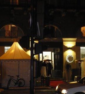Deux tentes trouent la nuit du boulevard qui rugit.