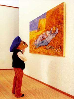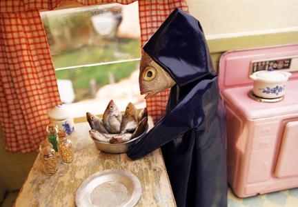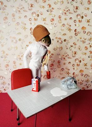 “Anne-Catherine Becker-Echivard est une artiste dans la lignée directe des auteurs de contes moraux ou des fables du 18ème siècle. Comme le fit La Fontaine en son temps, elle recrée le monde selon un univers qui lui est propre. Elle crée des maquettes où les personnages sont des poissons habillés de costumes de sa fabrication dans un décor qu’elle réalise elle même.”