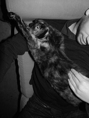 En bonus, une photo de Diesel qui experimente une nouvelle position de sieste, les bras en l'air, ca s'arrange pas...