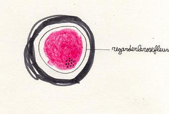 Crayon, stylo bille rouge et feutre sur