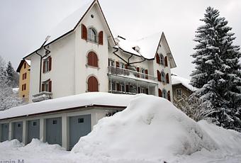 La colonne qui embellit le passage menant aux escaliers, doit mesurer dans les 1,50m. La neige ne laisse dépasser que les 5 derniers centimètres, eux-mêmes recouvert d’une dizaine de centimètres de poudre blanche.