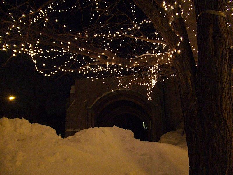 Samedi soir, sur Sherbrooke, quand j’ai levé la tête et que je me suis retrouvée au milieu de ces arbres enluminés, je n’ai pas pu m’empêcher de me sentir, comme une petite fille, dans un monde enchanté. J’ai oublié mes envies de printemps, je me suis assise quelques instant regarder la neige tomber doucement.