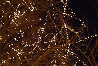 J’aime quand la féérie s’invite un moment, chassant la banalité avec seulement quelques ampoules, un arbre et quelques centimètres de neige.