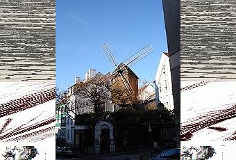 Seul vestige authentique des moulins de jadis, l'arcade de l'entrée, que l'on retrouve dans les tableaux d'Utrillo (je l'ai vu vendredi), Van Gogh et Bonnard. Je l'ai pris en photo.