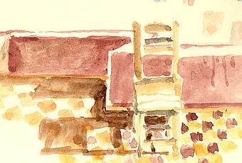 théâtre à ciel ouvert... Une chaise m'attend. C'est le matin, je commence la journée par un dessin...
