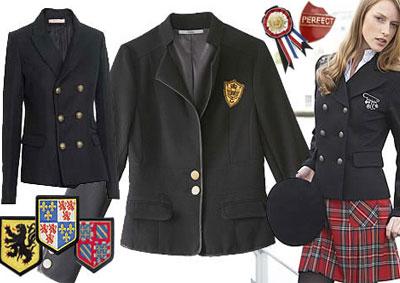 - La veste «Ecolière » avec un écusson style école privée ou club, ou encore des médailles avec des fils dorés :