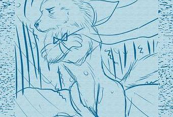 Je viens de terminer la 1ère planche, je suis un peu abonnée aux histoires enneigées je crois lol, pas grave j'adore dessiner la neige. Et voilà "Louveteau" le personnage principal de cette histoire.