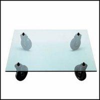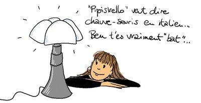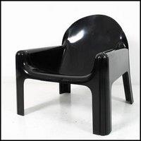 La table basse "Tavolo con ruote", créée dans les années 80, la lampe "Pipistrello" dessinée en 1965, ou encore ce fauteuil moulé de 1970.