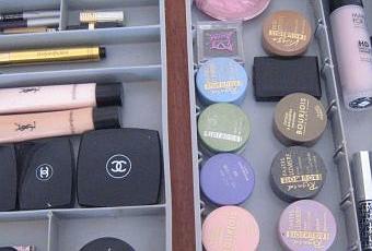 Un petit coin très limité, certes, MAIS essentiel : ma boite magique à MAQUILLAGE !! De luxe s'il en fut, puisqu'elle consiste en deux anciennes boites à vis généreusement offerte par mon MEURI