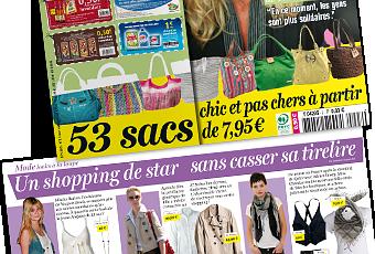 Les autres titres de la couv’ : Delphine Chanéac, son total look pour moins de 60€ . Alors là c’est clair qu’on nous vend du rêve. Et puis d’abord moi j’ ai une question : c’est qui putain, Delphine Chanéac? Plus tard en page 21, j’ apprends que c’est une actrice de retour de son shooting avec Adrien Brody (peuvent pas dire “tournage” comme tout le monde? Ah non c’est vrai, j’oubliais, on vend du rêve). Sinon vous avez aussi une sélection de 53 sacs chics et pas chers et 17 coupons de réduction d’une valeur totale de 310€ … hin hin… nous verrons ça …