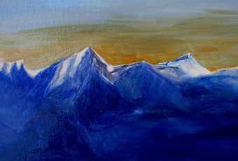 Peinture JLK : l’aube sur la Savoie. Huile sur toile, mai 2009.