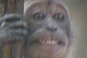 …Et vous célébrez ce Darwin, cet Anglais à pilosité grave, qui prétend que nous descendons de ça, mais nous avez-vous regardés, voyez-vous le moindre lien entre ce faciès et nos fringantes figures, percevez-vous la moindre parenté entre cette créature tremblant visiblement de nous voir et notre allure allante, nos fiers yeux bleus, notre profil grec et nos mensurations romines – et le Surhomme alors, de qui descendra-t-il, à votre avis ?