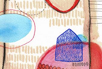 Crayon, mine de plomb, aquarelle, crayon de couleur et collage sur papier