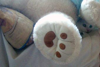J'ai des tonnes de photos de chat, et en particulier de Lilith. Qui, à son habitude, se planque dès que l'interphone sonne. J'ai eu du mal à la repérer derrière Teddy Beer, mais voilà son petit minois apeuré qui apparait.