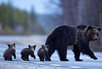 Les trois petits regardent sur leur gauche, attentifs à ne pas se faire écraser. Mais leur mère a repéré le véritable danger, sur la droite, là où s’est posé le photographe, dont on imagine volontiers la peur. Car l’ourse le regarde droit dans l’objectif et cette espèce suédoise, essentiellement carnivore, peut se montrer très agressive lorsqu’elle est surprise en compagnie de sa progéniture. En dépit de la forte population de plantigrades (plus de 3000 individus) dans ce pays, les accidents sont toutefois très rares. Peu sociable à l’égard des humains, l’ours brun scandinave s’éloigne en effet au moindre bruit, sauf lorsqu’il a quelque chose à protéger… comme ici. (Carl Johan Radstrm/Scanpix/Sipa)