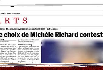 Ébahis et fortement ébranlés en apprenant que Michèle Richard aurait l’honneur d’être leur présidente, plusieurs peintres et sculpteurs, m’ont exprimé leur désarroi.
