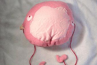 son aspect physique: Tout rond et rose, avec une bouchabisou qui fait toute la tête ou presque et des petits yeux aiguisés, qui savent détecter ou coller leur futur Poutou...De grands bras pour saisir sa victime, tous minces, disproportionnés par rapport à son gros corps tout rose et rond.