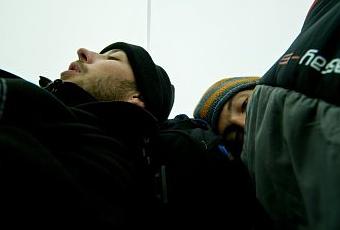 Julien est bien sorti faire quelques tours dans l'espoir de pouvoir trouver des tâches réalisables (remonter l'igloo, améliorer le mur, chercher de l'eau, pisser avec élégance dans les bourrasques, gratter la neige, remettre les sardines, retendre la tente...). Succès mitigés.