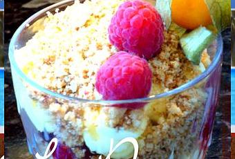 Ce sont les "Verrines de framboises et mascarpone en crumble de Roudor".