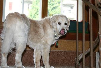 La preuve par l’image. Jocaste va bien. Elle monte seule les escaliers, plus vite que moi et m’attend sur le palier. Ça permet à son coeur de se reposer. Sur l’image ci-dessus elle doit penser au biscuit que je lui donne, depuis toujours, après la promenade. Sa motivation pour rentrer à la maison.