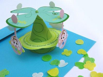 Faire-part "Couture" Retrouver une part de son enfance : en recevant par la poste, un petit manège à découper et à monter facilement.Tous les modèles de faire-part de naissance sont présentés dans la boutique en ligne de LOUPIOTS DESIGN.
