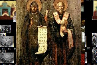 A l'occasion de la fête des Saints Cyrille et Méthode, apôtres des slaves, qui tombe cette année un dimanche, un moleben (office d'action de grâce) ainsi qu'une procession autour de l'église, seront organisés à la fin de la divine liturgie. Pour être absolument exacts, il faut préciser que les Saints Cyrille et Méthode n'étaient pas des Slaves, mais provenaient plutôt de Salonique (Grèce actuelle). Toutefois, leur influence profonde sur la liturgie, le Christianisme, la transmission de la Bible dans un langage commun aux Slaves (dont les Bulgares et les Tchèques, pour ne citer que ceux-là, mais il y en a bien d'autres, qui leur vouent un véritable culte, totalement mérité, au point de leur consacrer une "fête nationale") sans compter les influences indirectes, fut tellement importante que l'on ne peut raisonnablement passer sous silence ces deux figures marquantes.Méthode, d'abord fonctionnaire impérial, et son jeune frère Constantin, que sa science fit surnommer "le philosophe" et qui prit le nom de Cyrille peu avant sa mort, se firent moines à l'Olympe de Bithynie. Les deux frères partirent en mission d'abord en Russie méridionale, puis en Moravie.