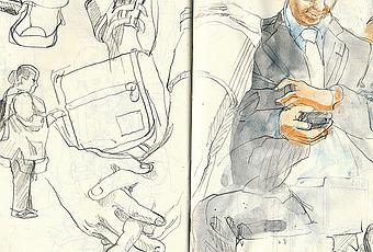 Plein de sujets à dessiner ! J'y reviens aujourd'hui après une petite visite à la mer, aux vaches, à la campagne... Et heureusement j'avais scanné ces quelques pages avant de PERDRE MON CARNET sur la route. Moult dessins perdus et aussi mon carnet d'adresses, snif!