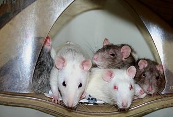 Les six rates accueillies il y a une quinzaine de jours, se royaument dans leur nouvelle cage, le haut de la duetto -pour les connaisseurs-. Leur ancienne maîtresse avait trouvé des adoptants pour les trois fifilles que je souhaite placer -les trois les plus sociables et en meilleur santé-, mais après avoir appris qu’ils venaient d’en abandonner trois autres parce que leur caractère ne leur convenait pas, j’ai refusé de les leur laisser. Ça m’ennuierait vraiment qu’elles sortent de chez moi pour qu’on les abandonne une deuxième fois si elles ne correspondent pas au rêve de “peluche” que leurs adoptants s’en font. En ce moment, je cohabite avec… vingt-sept rats! Pour quelqu’un qui souhaite descendre son nombre de rongeurs à douze ou quinze, je suis vraiment, mais vraiment, mal barrée. Ceci dit, quatre de ces boules de tendresse et facéties, ne m’appartiennent pas. Maman Fantine et trois de ses filles devraient bientôt retrouver leurs maîtresses. Il y a eu des contretemps dans le passage des relais, mais ces quatre-là partent à coup sûr! J’ai également Castille, Carina, Athos mon Petit Chose, Scarole, Petit Plus et Gary Cooper sur la corde raide. Pour l’instant, ils se battent contre la maladie ou la vieillesse, mais la mort peut les emporter à n’importe quel moment. Ça va, ça vient le monde des rats…
