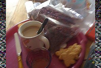 sucre), un autre fruit séché et acidulé, petits gâteaux à la canneberge et au sirop d'érable (fameux!), jus de fruits pomme canneberge. la seconde photo est floue et je n'ai pas pu en reprendre