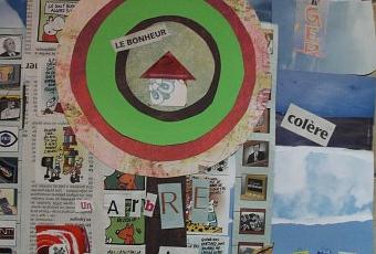 au départ c'était un gant mais il fut déchiré en l'enlevant bon tant pis alors j'ai pensé aux collages et voici un truc digne d'un enfant de 3 ans inspiré d'un de mes tableaux amusement :