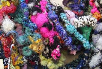et je vais faire un sac avec ces laines mélangées avec des laines fantaisies