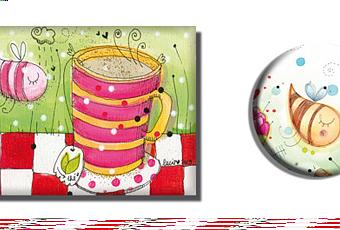 Je suis passé un jour sur le blog de Lucie et suis tombé amoureux de l’abeille amoureuse…n’est-elle pas jolie? qui ne succomberait pas! ensuite, j’ai succombé une nouvelle fois mais pour une tasse de thé, du thé vert, j’adore le thé vert… Voici donc 2 nouveaux magnets pour une jolie sélection spéciale qui rejoignent les autres créations de Lucie!
