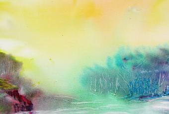 Paysage au ciel jaune orangé - aquarelle ©masmoulin 2009