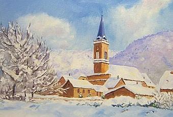 Paysage de neige, huile sur toile 50 X 70.