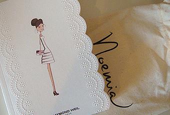 Avant l'arrivée de Sacha, j'ai travaillé sur des illustrations pour la marque de montres Raymond Weil et plus particulièrement la collection pour femmes Noemia. Vous pouvez retrouver ce personnage sur facebook et y suivre ses aventures. Elle organise en ce moment (pour ceux qui sont à Singapour ou en Malaisie) un concours pour gagner cet adorable carnet ponctué de dessins.