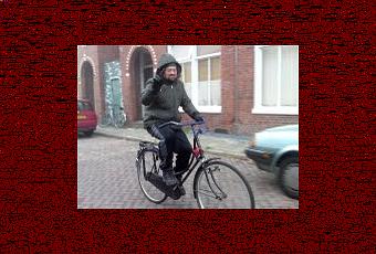 Eh bien, ces célèbres bécanes sont absolument impossibles à chevaucher ! On a le cul loin derrière, les poignées sur les cuisses, pas de vitesses, frein au pédalier, poids inimaginable, pas de cale-pieds, pas de rétro, pas de clochette, mais… enfin… Quel plaisir ! Ah, ah, ah… Nous avons roulé dans la brume tout l'après-midi, bu trois cafés, mangé une soupe, vu des dizaines de gens roulant assis en amazone sur des porte-bagages, croisé six cent joggers, traversé cinquante canaux, aperçu mille péniches habitées, doublé trois types qui roulaient avec deux vélos chacun, souri à des milliers d'Hollandaises, toutes plus roulantes les unes que les autres, tout ça dans une brume à pelleter à la louche ! Bref, lang leve Nederland !