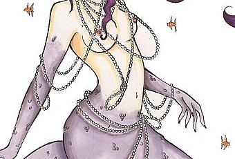 vraiment trop contente)... un petit sketch pour moi donc et je lui ai demandé une sirène pour changer. Voici donc le résultat, c'est une merveille... une sirène avec un poisson dépréssif comme