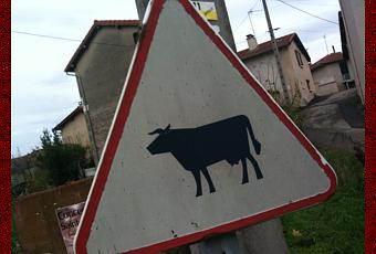 Je ne résiste pas au plaisir de vous faire découvrir ces instants de grâce ou un panneau vous met en garde d'une traversée de bêtes á cornes ou une borne kilométrique dernière génération en...1700. Bref, c'est la campagne profonde! Quand on pense que des millions de dollars sont dépensés par des multinationales pour missionner des boites de pub pour leur pondre des campagnes mettant à l'honneur des champs peuplés de ruminants en studio alors que la nature est si simple,si belle, si accessible! Nonobstant les chemins accidentés et boueux et les attaques de rapaces géants bien sûr! Take a breath baby!